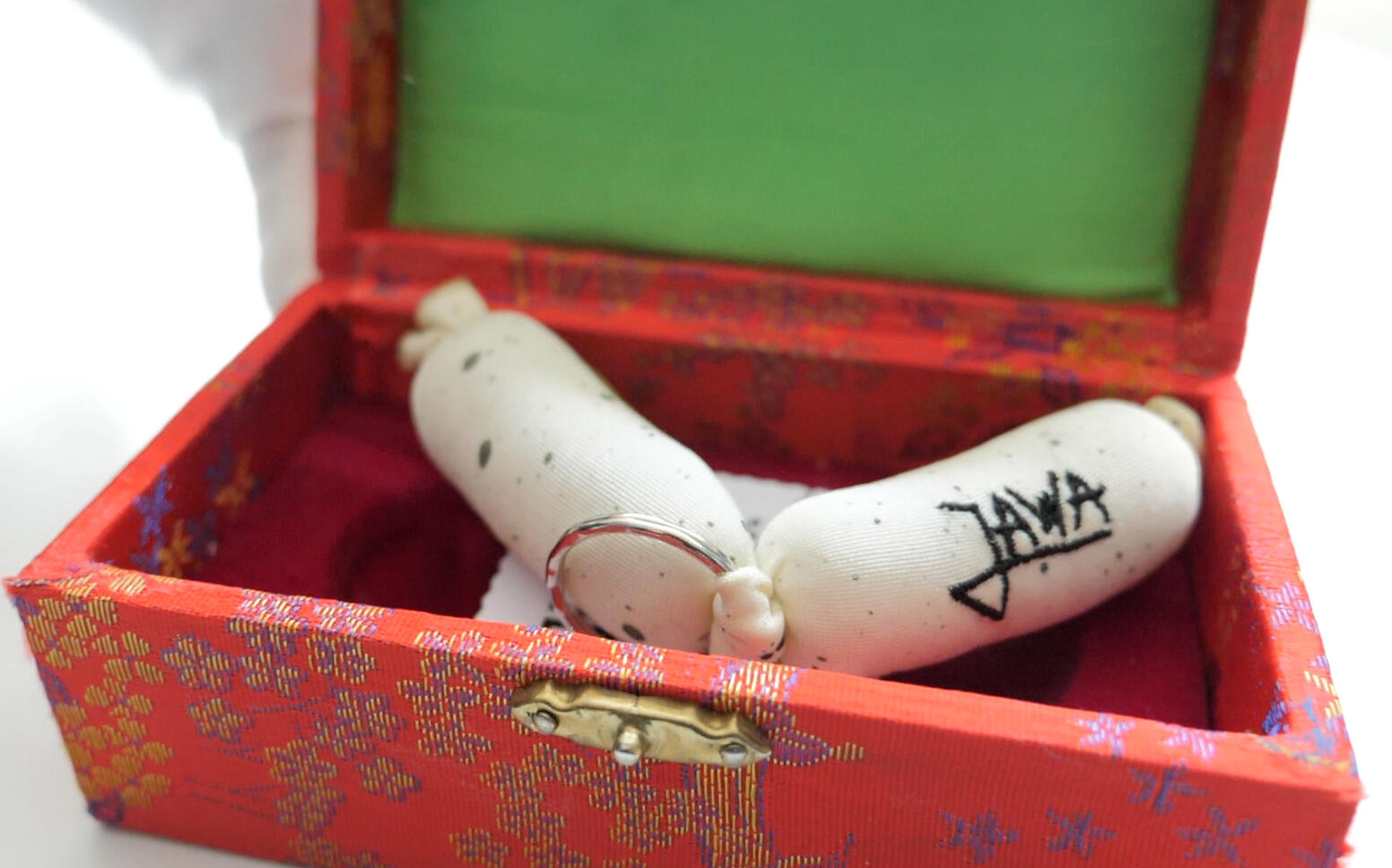 Produziert von Aufschnitt Berlin, hochwertiges Desingprodukt, Weißwurstanhänger mit Jawaschriftzug bestickt.12,00 €